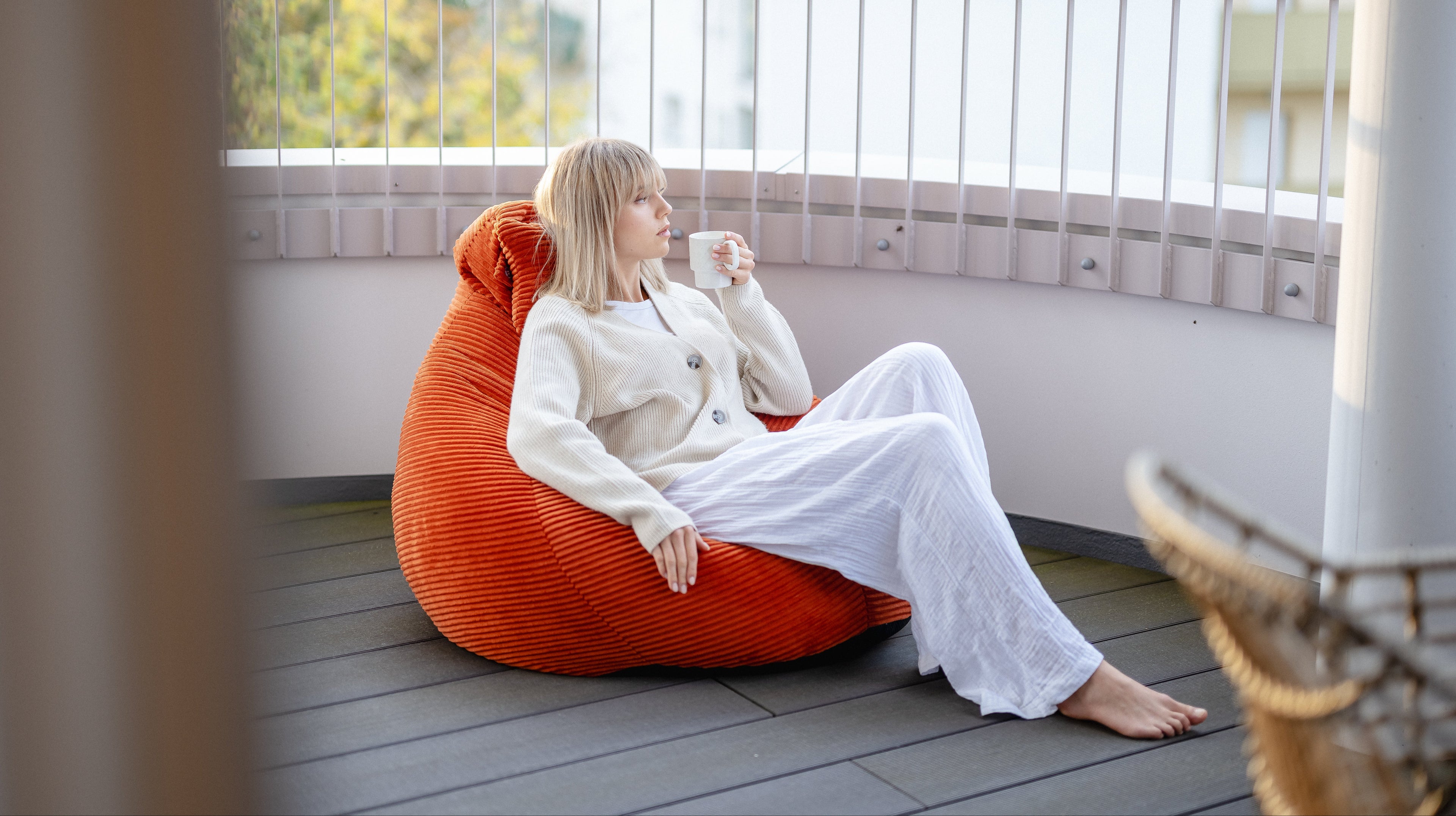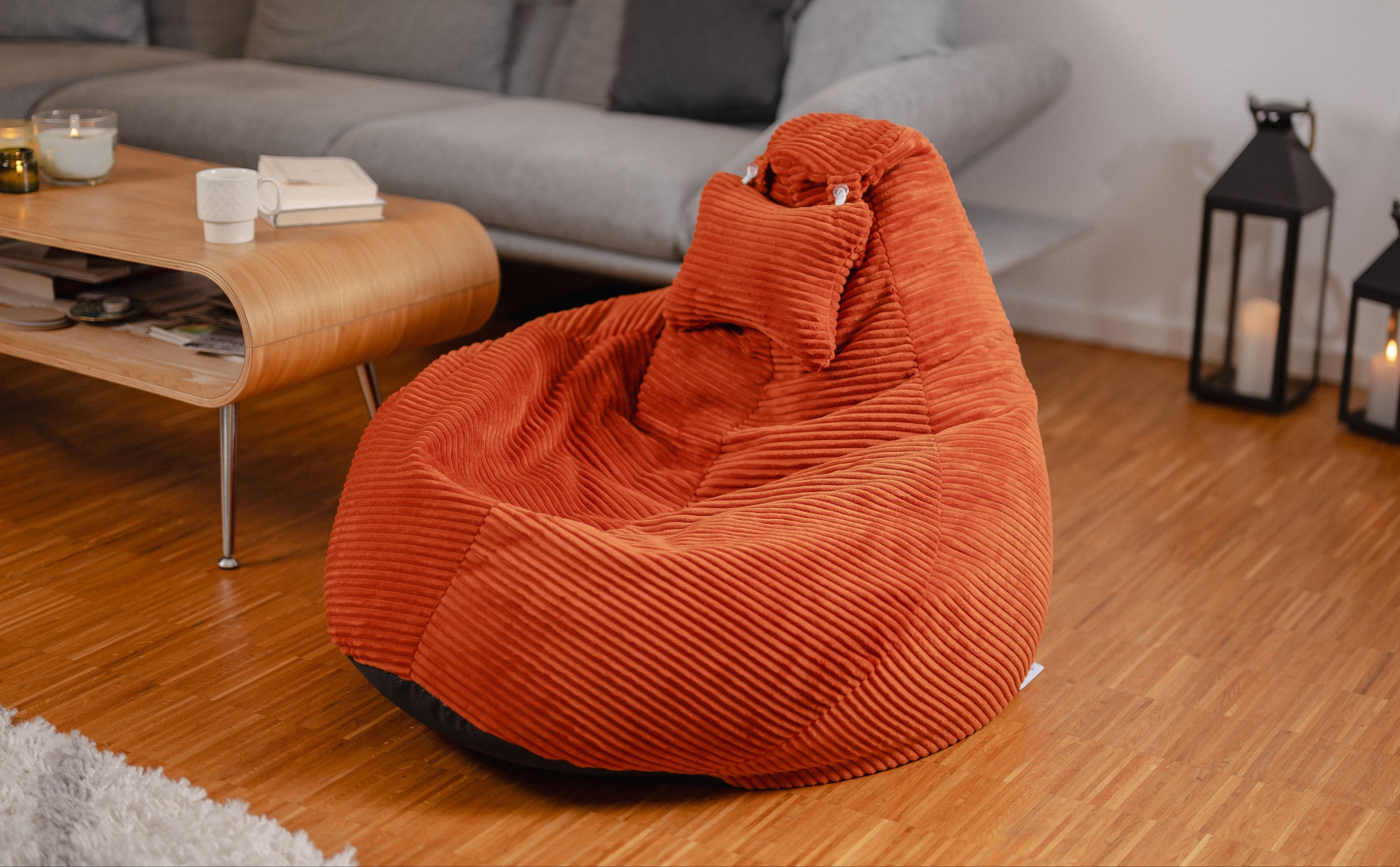 𝐃𝐞𝐫 𝐰𝐞𝐢𝐜𝐡𝐞 𝐂𝐨𝐫𝐝-𝐒𝐭𝐨𝐟𝐟 fühlt sich sanft auf deiner Haut an und sorgt für ein unvergleichbares Wohlfühlerlebnis. Ideal für lange Lese- oder Gaming-Sessions. Dein LazyCloud Sitzsack ist nicht nur super bequem, sondern auch stilvoll – das perfekte Möbelstück für deine Leseecke oder dein gemütliches Wohnzimmer.