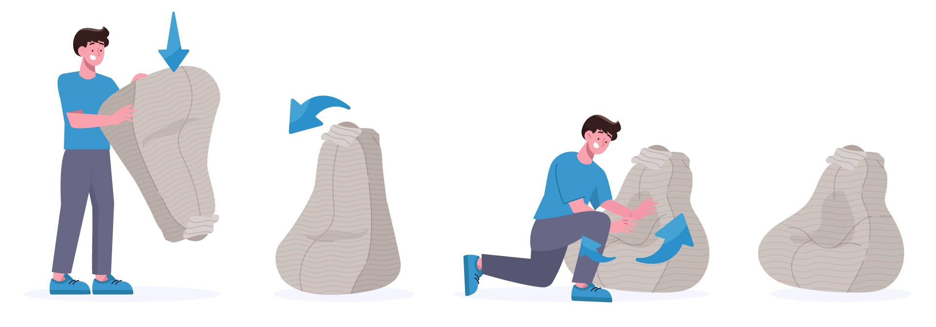 - Hebe den Sitzsack kurz verkehrt herum an, damit die Füllung in die Rückenlehne fällt.